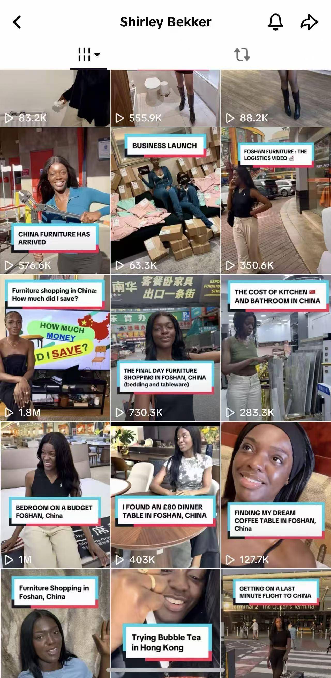 雪莉在个人社交账号上分享了在佛山购买家具的经历,从挑选◇、购买到收货,仅单条视频播放量就超百万。英国《每日快报》曾对雪莉的佛山家具之旅作了报道:“英国社交媒体用户对关于从中国工厂、批发商处购买到极具性价比商品的视频很感兴趣。”