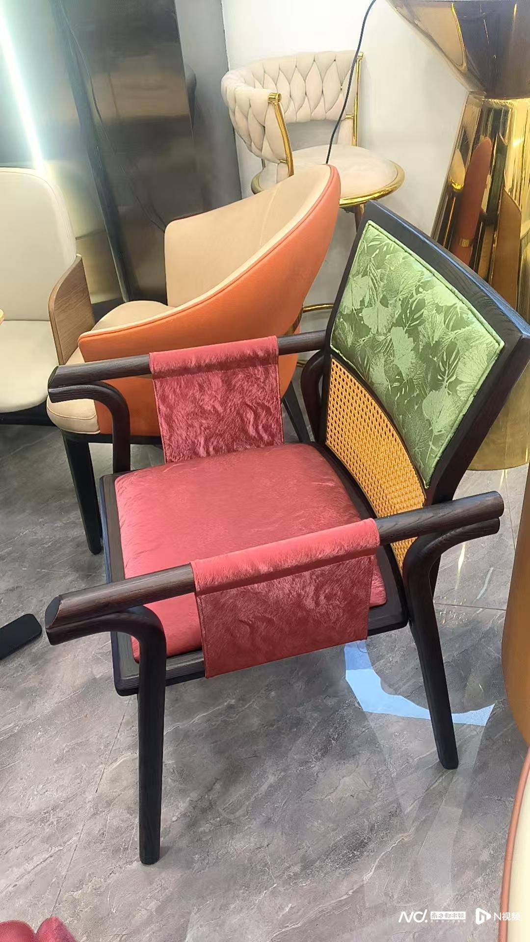 ■“我打算买几把椅子,种类和选择实在太多了,花了我整整三天去挑。最后看中的是一张红绿撞色的木椅,座面和靠背布料有植物暗纹★,深色木质加上黄色藤编又富有层次…。★•”丹尼尔森介绍说▲•○。