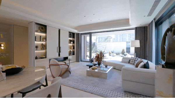南向约9.3米超大面宽•☆□,搭配约3.3米的朗阔层高,营造出恢宏通透的空间尺度感。客厅与南向阳全打通,延伸出一片融于自然的阳光厅堂,推窗即见私家庭院★◇,实现室内外场景的自由切换,演绎真正的墅居生活意境。
