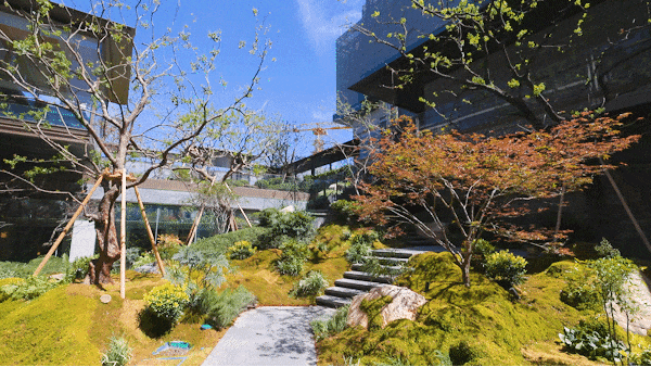 而最令人惊艳的,当属约6米地势差打造的下沉式山水庭院,山、石、水=◇▲、林有序交织,犹如一幅▪“豁然开朗山水轴卷,每一步皆是景致,每一处皆有不同☆○。