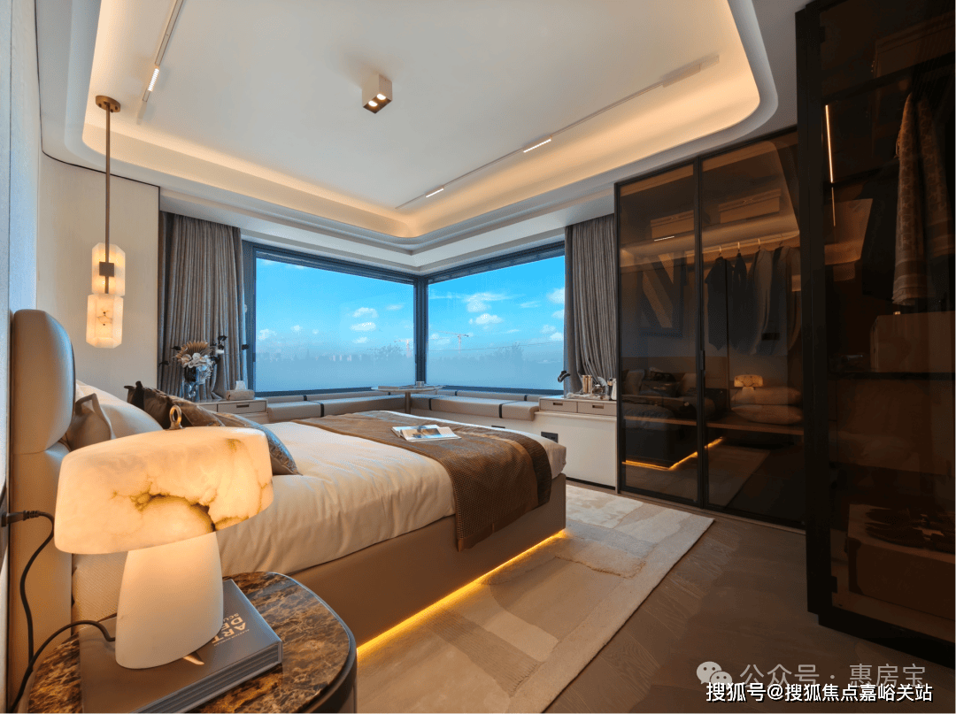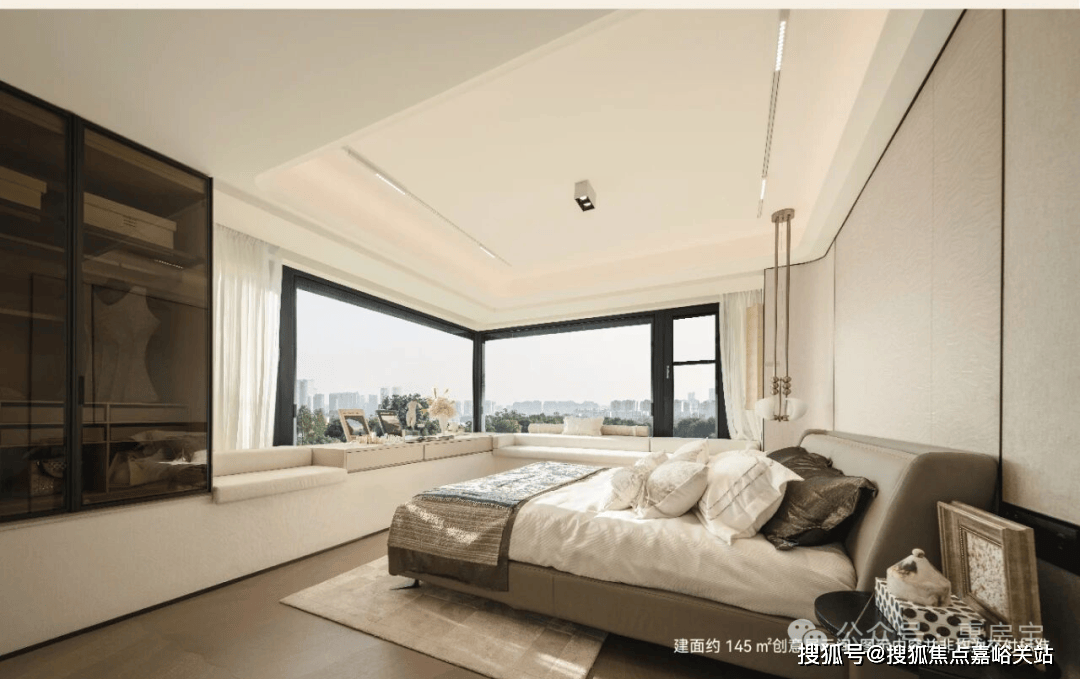 建面约 145㎡户型以 270°转角飘寄搭配超高窗墙比解锁超广角视野▽◇,将无限景致“拉”至眼前…▷□。城市的璀璨天际、静逸的河景○◆◇、灵动的山水庭园,点亮窗前,让生活的每一刻都浸润在自然与开阔之中。