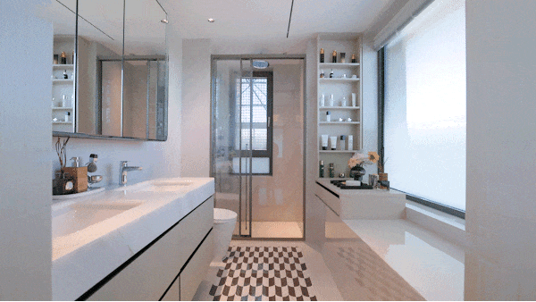 主卫同样配有纵向飘窗,空间通透敞亮●▽,毫不压抑。全明卫生间配置高端体验△◁,选用恩仕智能马桶,汉斯格雅龙头花洒与杜拉维特台盆共同打造高品质洗漱动线▪△,线性浴霸实现快速均匀取暖。镜柜巧妙收纳日常用品,让台面长久整洁清爽,更特别配备美妆冰箱,贴心照顾护肤需求◇■■。
