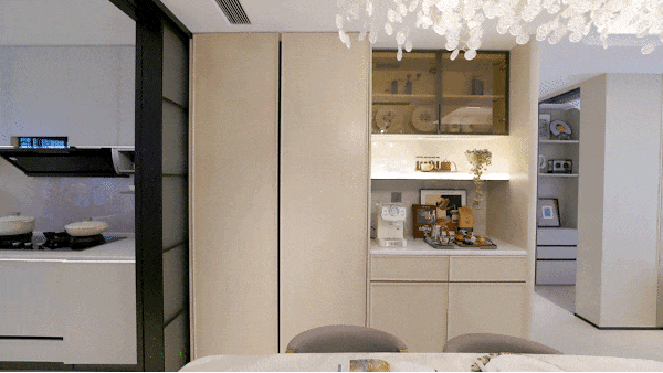 铝合金门套搭配清透玻璃门☆,内侧采用光滑易洁玻璃,油污轻轻一擦即净。既保持了空间的通透开阔,又让烹饪者随时与客餐厅的家人互动交谈——菜在锅里,笑在耳边○=■,烟火气与亲情味融融相伴。